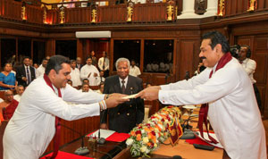 The victorious United People’s Freedom Alliance (UPFA) leader of the Uva Province took oaths as Chief Minister of the province this morning before President Mahinda Rajapaksa at the Presidential Secretariat. In the Uva Provincial Council election held on September 20, he polled over 96,000 votes in the Monaragala District.